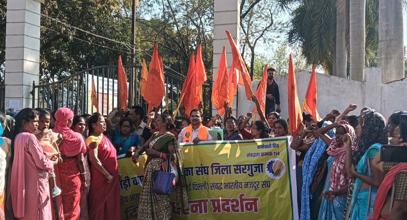 अंबिकापुर। आंगनबाड़ी कार्यकर्ता सहायिका संघ, छत्तीसगढ़ प्रदेश (अखिल भारतीय आंगनबाड़ी कर्मचारी महासंघ, नई दिल्ली संबद्ध) द्वारा अपनी विभिन्न मांगों को लेकर आज जिला मुख्यालयों में रैली निकाल पीएम के नाम कलेक्टर को मांगपत्र सौंप संघ ने आंगनबाड़ी कार्यकर्ताओं और सहायिकाओं के हित में त्वरित कार्रवाई की मांग की है।
