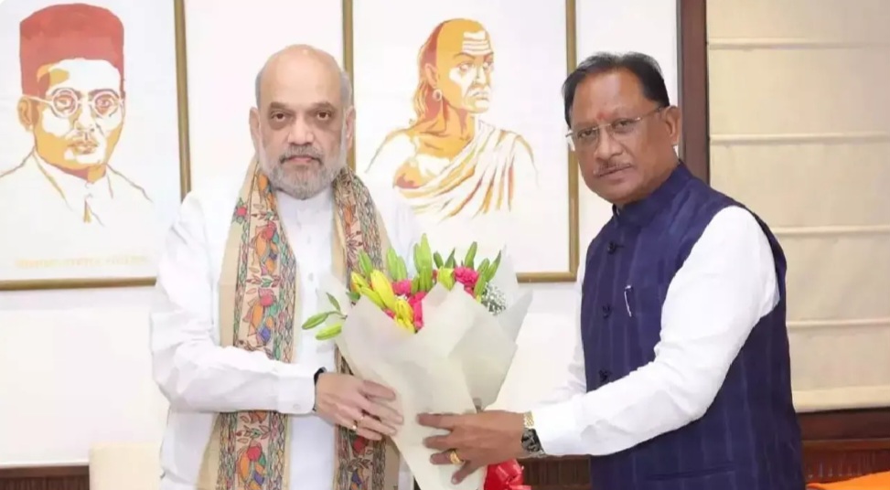 दिल्ली- रायपुर। छत्तीसगढ़ के सीएम विष्णु देव साय ने दिल्ली में केंद्रीय गृहमंत्री अमित शाह की मुलाकात की। दोनों नेताओं के बीच करीब दो घंटे तक बैठक चली। जिसमें सीएम श्री ने नक्सल विरोधी अभियानों की जानकारी दी। केंद्रीय गृहमंत्री श्री शाह ने करेंगुट्टा पहाड़ी पर 21 दिनों तक चले सबसे लंबे नक्सल ऑपरेशन में शामिल जवानों का सम्मान किया।