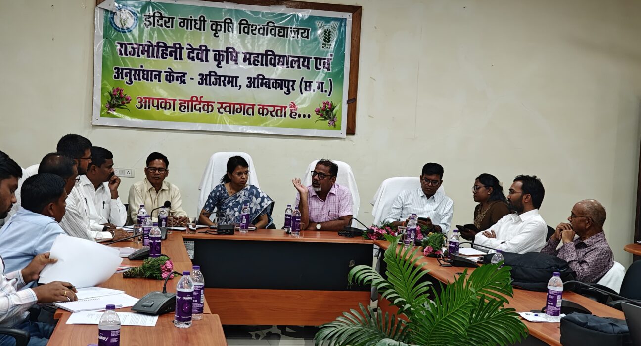 अंबिकापुर। परिक्षेत्रीय कृषि अनुसंधान केंद्र में ‘रिसर्च एंड एक्सटेंशन प्लानिंग मीटिंग’ (लेवल–1) सत्र 2026-27 का दिनांक 24 अप्रैल 2026 को निदेशक अनुसंधान सेवाएं, इंदिरा गांधी कृषि विश्वविद्यालय रायपुर के मार्गदर्शन में सफलतापूर्वक आयोजन हुआ। इस महत्वपूर्ण बैठक की प्रथम पाली में सुश्री संपदा पैंकरा, उप-संचालक कृषि सूरजपुर की अध्यक्षता एवं डॉ. एस. के. सिन्हा, अधिष्ठाता राज मोहिनी देवी कृषि महाविद्यालय एवं अनुसंधान केन्द्र अम्बिकापुर के को-चेयरमैन एवं द्वितीय पाली में उद्यानिकी विभाग के विभागाध्यक्ष डॉ. जी. एल. शर्मा की अध्यक्षता एवं अनुवांशिकी एवं पादप प्रजनन के प्रमुख वैज्ञानिक डॉ. एस. के. नायर एवं डॉ. के. एल. पैंकरा, सह-संचालक अनुसंधान, परिक्षेत्रीय कृषि अनुसंधान केन्द्र अम्बिकापुर की गरिमामयी उपस्थिति में संपन्न की गई।
