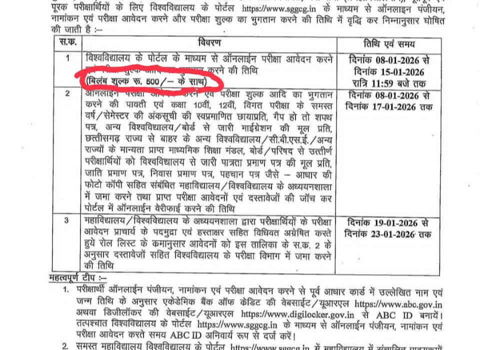रचित मिश्रा ने मामले की गंभीरता को रेखांकित करते हुए बताया कि विश्वविद्यालय द्वारा 8 जनवरी 2026 को जारी अधिसूचना में अचानक विलंब शुल्क को ₹500 कर दिया गया है, जो कि पूरी तरह से तर्कहीन है। उन्होंने कहा कि अब तक की व्यवस्था के अनुसार विलंब शुल्क मात्र ₹100 लिया जाता था, जिसे अब एकमुश्त पांच गुना बढ़ा दिया गया है। एक तरफ जहाँ सरकार शिक्षा को सुलभ बनाने की बात करती है, वहीं विश्वविद्यालय का यह फैसला विद्यार्थियों और उनके अभिभावकों पर अनावश्यक आर्थिक बोझ डाल रहा है।