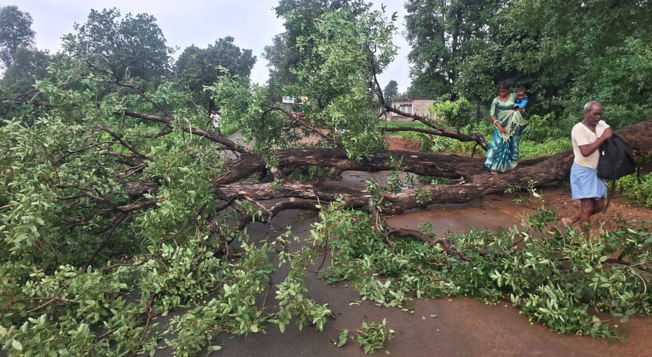 रामानुजगंज. रविवार की दोपहर 1 बजे के करीब मूसलाधार बारिश से ग्राम सनवाल एवं डिंडो मुख्य मार्ग के ग्राम सुंदरपुर में सड़क के बीचो-बीच पेड़ के गिर जाने से घंटों आवगमन बाधित हो गया वही बाइक सवार दंपति पेड़ की चपेट में आने से बाल बाल बचे। चार चक्का वाहन का आना-जाना पूर्णता बाधित हो गया था। वहीं बाइक सवार वैकल्पिक मार्ग से जा रहे थे। धमनी रेंज के रेंजर अजय वर्मा को सूचना के बाद तत्काल मौके पर वन अमले को भेजा गया जिनके द्वारा पेड़ को कटवा कर आवगमन को सामान्य किया गया।