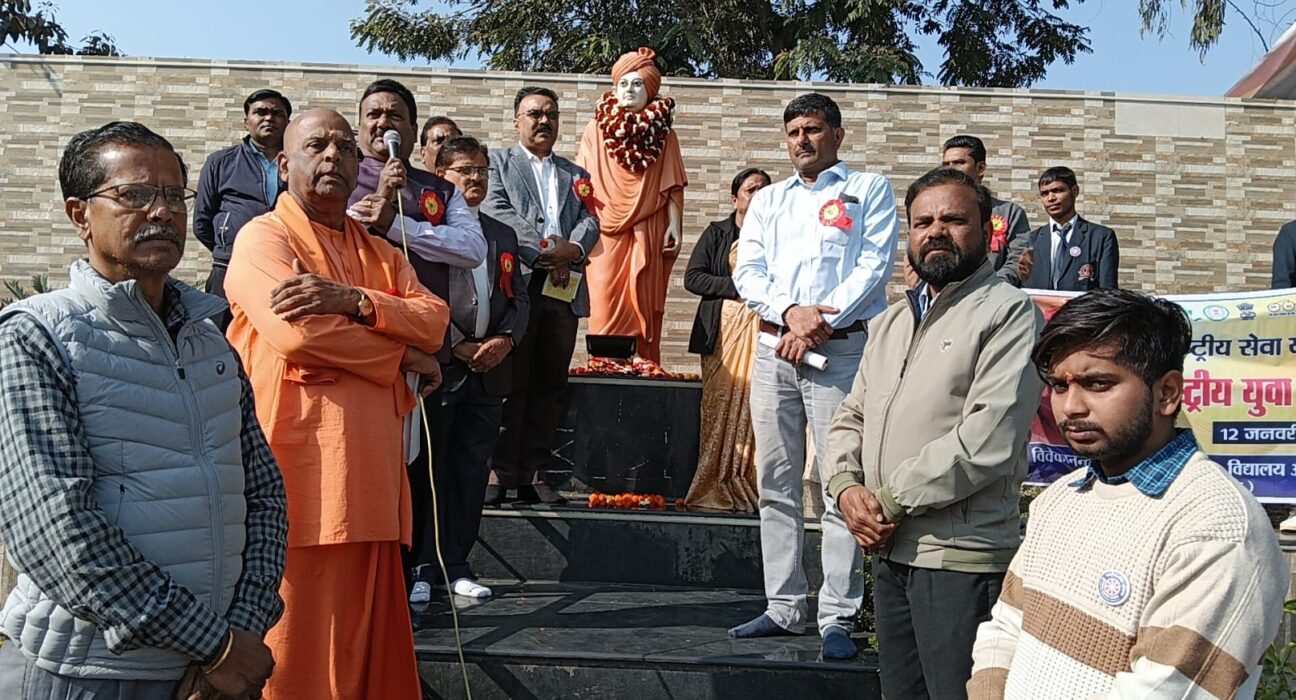 अंबिकापुर….श्री रामकृष्ण विवेकानन्द सेवा आश्रम अम्बिकापुर एवं विवेकानन्द विद्या निकेतन उ. मा. विद्यालय अम्बिकापुर एवं राष्ट्रीय सेवा योजना प्रकोष्ठ संत गहिरा गुरु विश्वविद्यालय सरगुजा अंबिकापुर के संयुक्त तत्वाधान एवं श्री रामकृष्ण विवेकानन्द सेवा आश्रम अम्बिकापुर के अध्यक्ष श्री कान्त दुबे एवं सचिव श्रीमद स्वामी तन्मयानन्द महाराज के मार्गदर्शन में कुलपति प्रो.राजेंद्र लाकपाले, कुलसचिव डॉ. शारदा प्रसाद त्रिपाठी, जिला शिक्षा अधिकारी दिनेश झा एवं राष्ट्रीय सेवा योजना समन्वयक डॉ. एस.एन.पाण्डेय के मुख्यातिथ्य में 12 जनवरी 2026 को राष्ट्रीय युवा दिवस के उपलक्ष्य में भव्य रैली का आयोजन किया गया ।