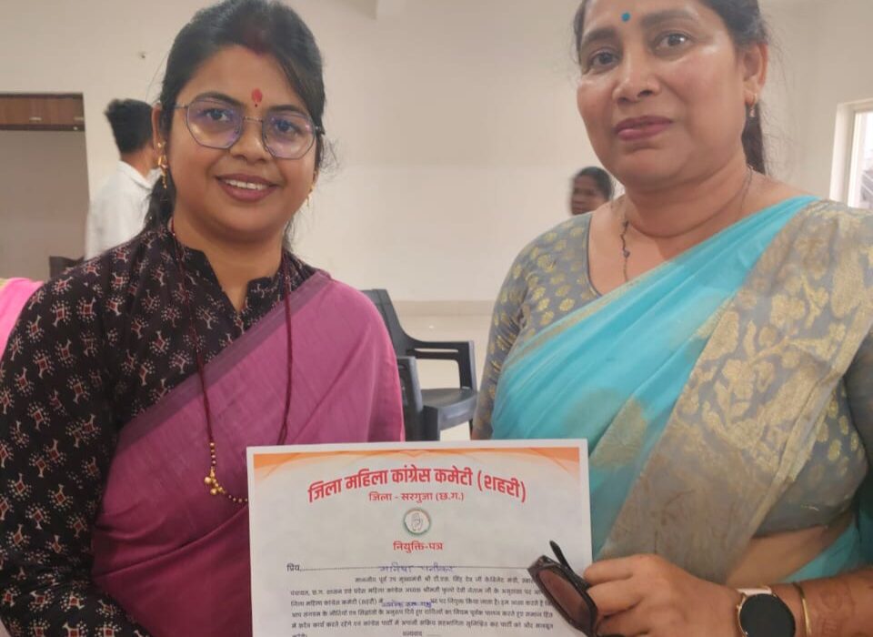 8 नवम्बर 025 को अम्बिकापुर के राजीव भवन में कांग्रेस पार्टी का एक अहम बैठक आहूत किया गया ।जिसमें सरगुजा जिले से महिला कांग्रेस पदाधिकारी एवं कार्यकर्ता उपस्थित थे। जिसमें सर्वसम्मति से श्रीमती मनीषा पनिकर को पुनः सीतापुर महिला ब्लॉक कांग्रेस अध्यक्ष चुना गया है।इससे पूर्व श्रीमती मनीषा पनिकर लगातार दो बार सीतापुर महिला ब्लॉक कांग्रेस अध्यक्ष पद पर आसीन रहे । महिला कांग्रेस के जिला अध्यक्ष श्रीमती सीमा सोनी द्वारा नियुक्ति पत्र प्रदान कर श्रीमती मनीषा पनिकर को पुनः सीतापुर ब्लॉक के महिला कांग्रेस अध्यक्ष की जिम्मेदारी सौंपी है।