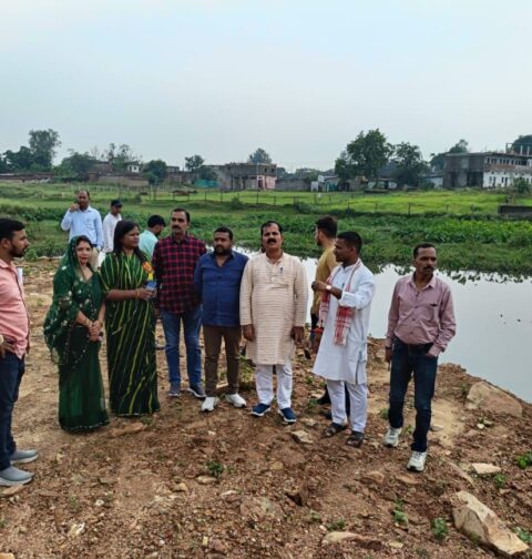 भाथुपारा तालाब का अस्तित्व संकट में, अवैध कब्जे की शिकायत पर निरीक्षण करने पहुंची महापौर