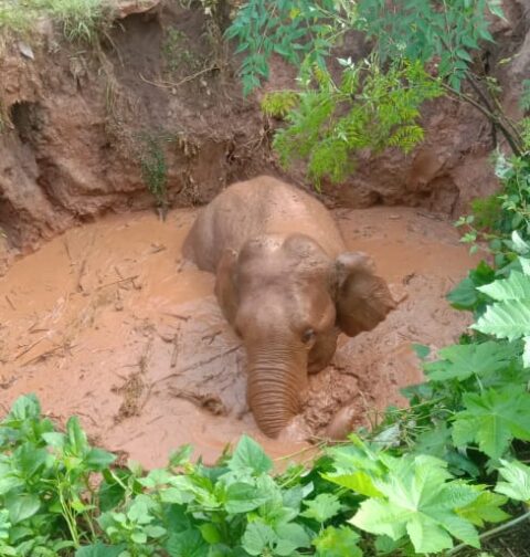 कुँए नुमा गड्ढे में गिरा जंगली हाथी,वन विभाग ने रेस्क्यू कर गड्ढे से निकालकर बचाई हाथी की जान